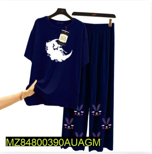 2 Pcs Women's Stitched Jersey Printed Sleepwear