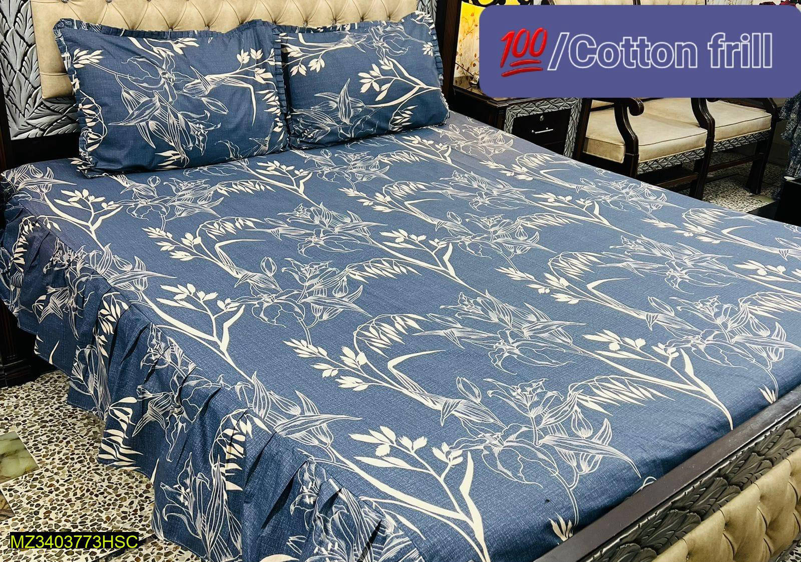3 Pc Printed Frill Bedsheet