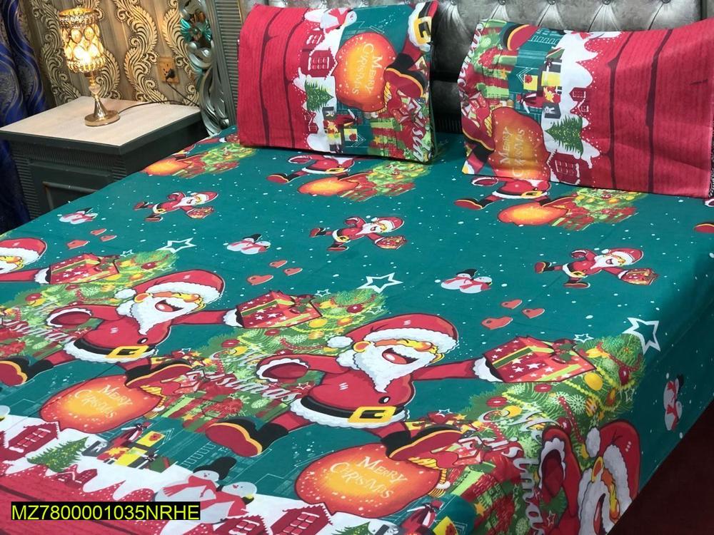 3 Pcs Cotton Printed Double Bedsheet
