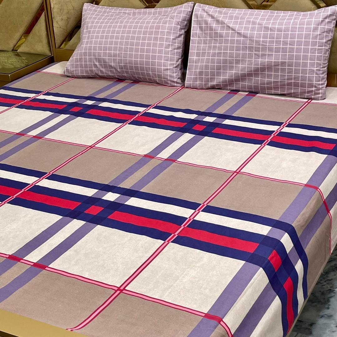 3 Pcs Cotton Printed Double Bedsheet