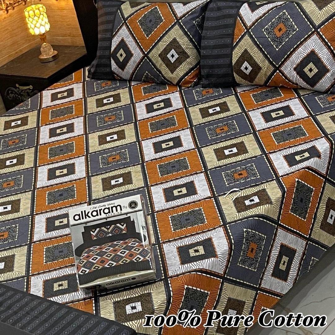 3 Pcs Cotton Printed Double Bedsheet