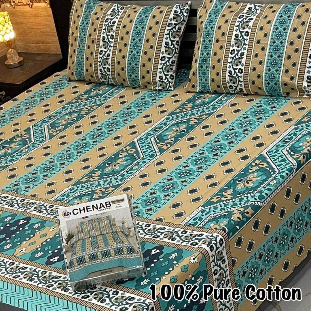3 Pcs Cotton Printed Double Bedsheet