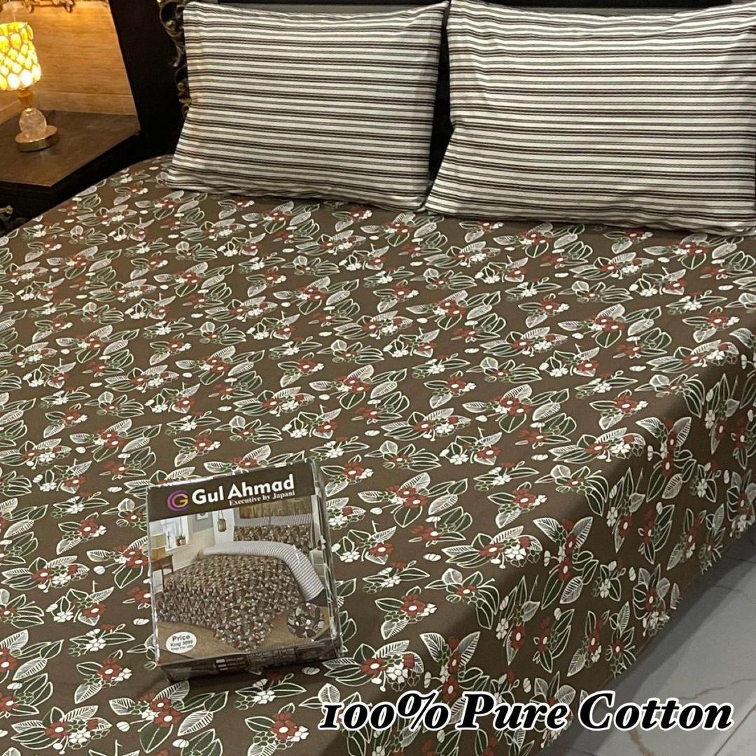 3 Pcs Cotton Printed Double Bedsheet