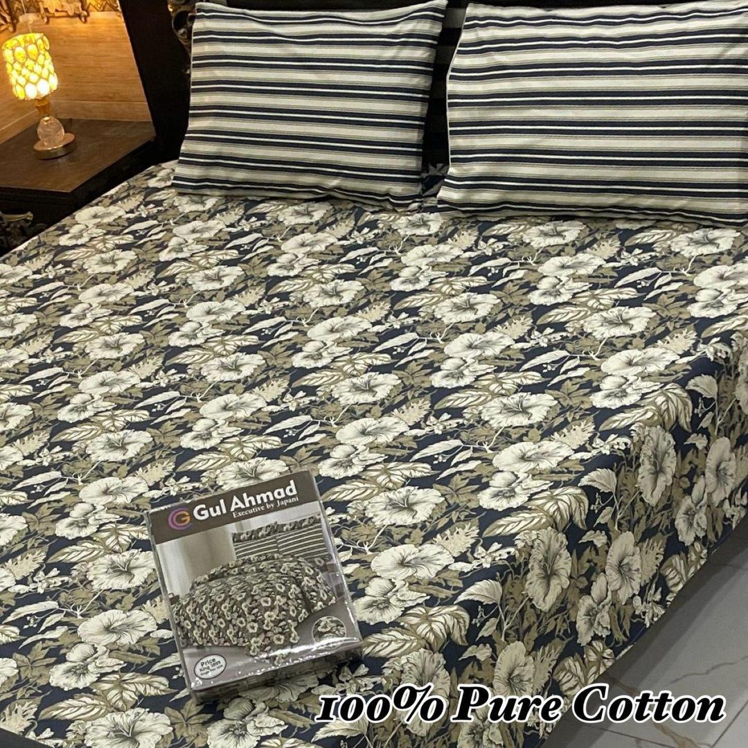 3 Pcs Cotton Printed Double Bedsheet