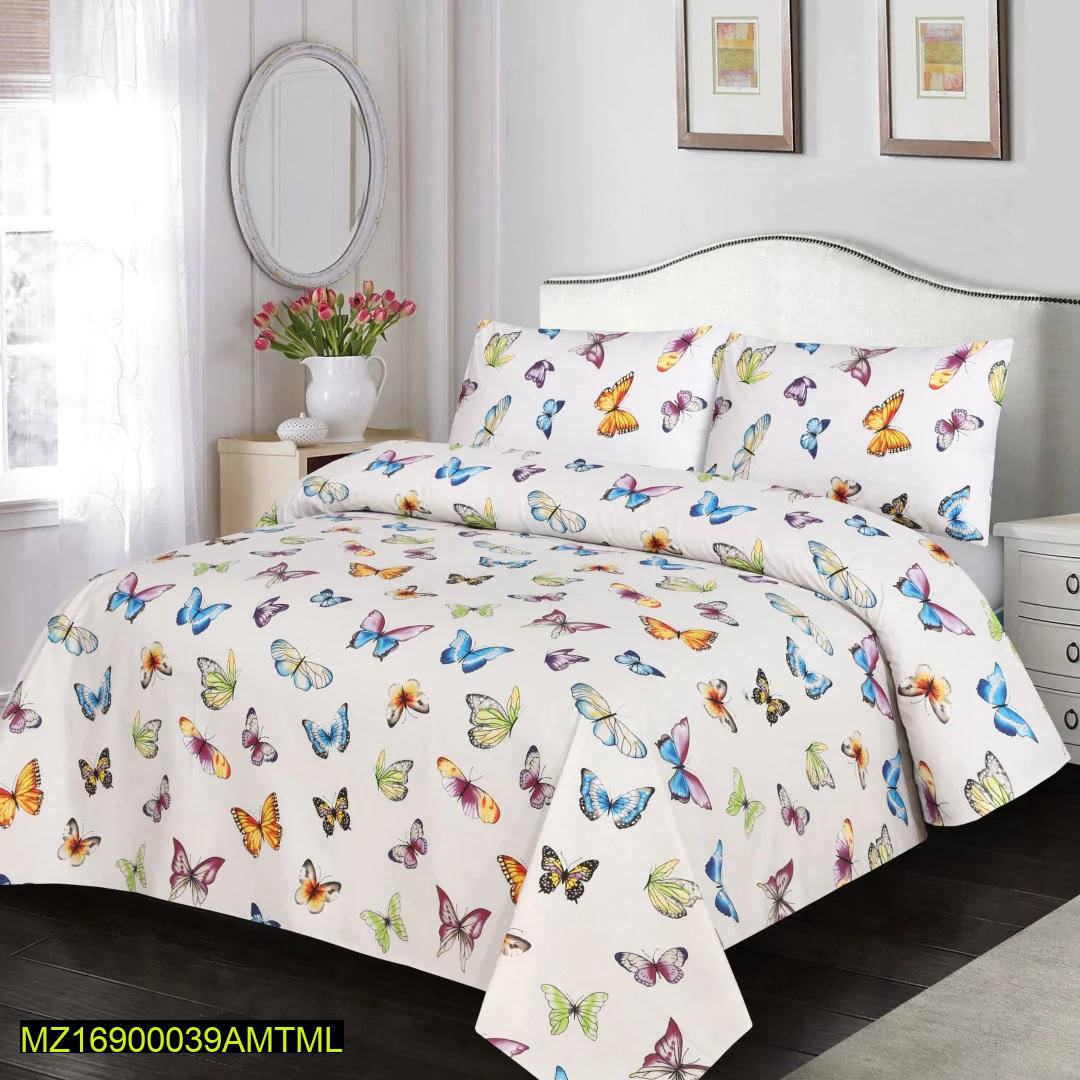 3 Pcs Cotton Printed Double Bedsheet