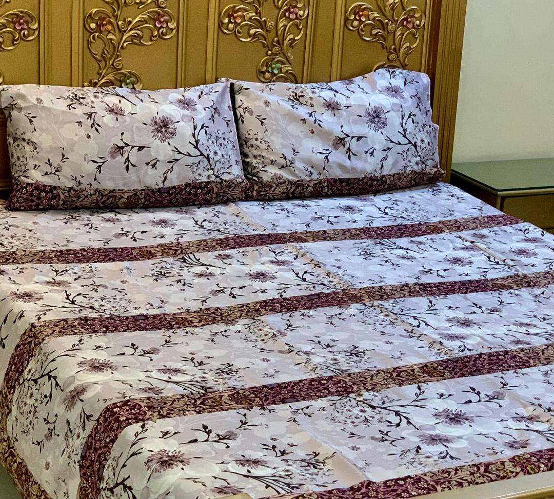 3 Pcs Cotton Sotton Printed Double Bedsheet