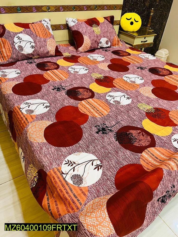 3 Pcs Crystal Cotton Printed Double Bedsheet