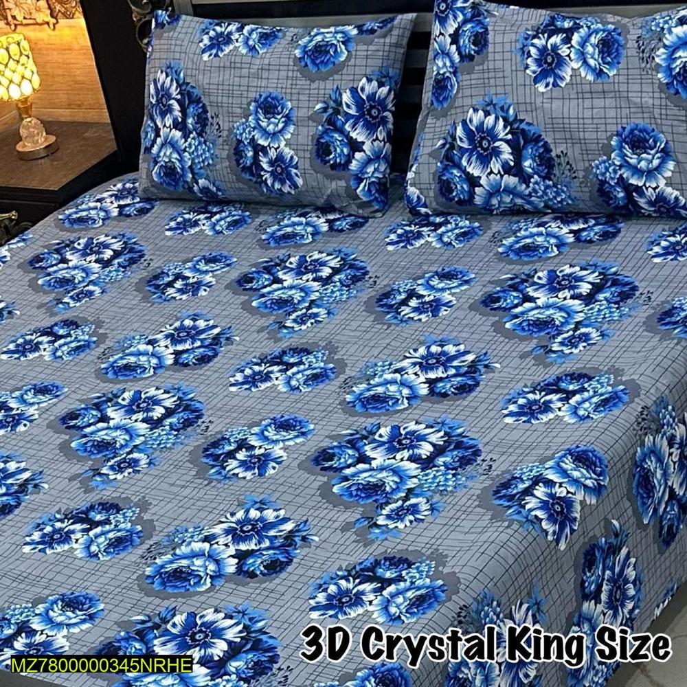 3 Pcs Crystal Cotton Printed Double Bedsheet