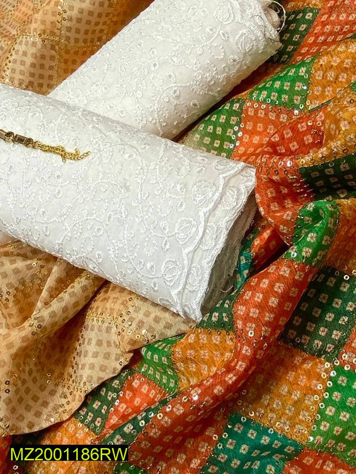 3 Pcs Women's Unstitched Chikankari Embroidered Suit
