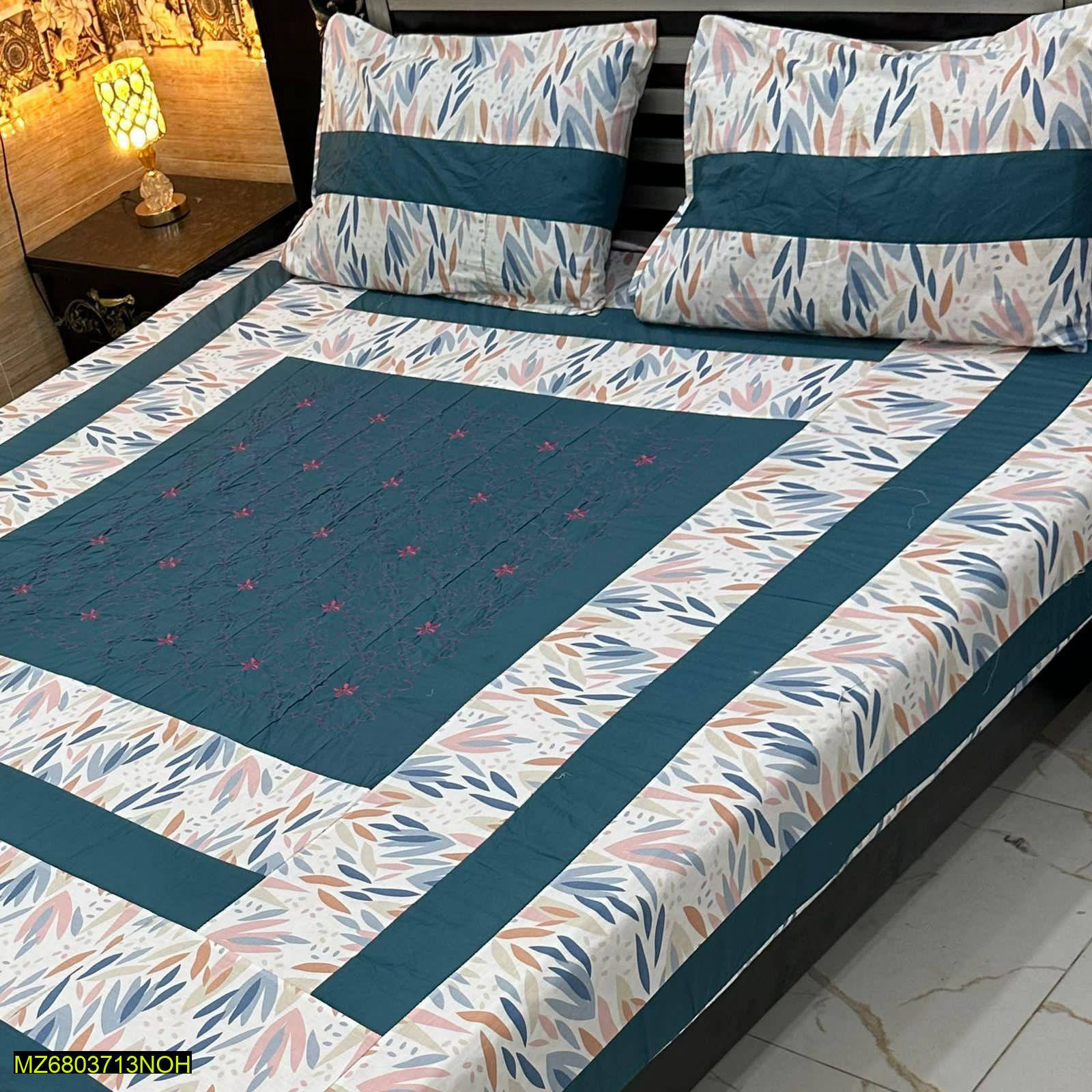 Elevate the look of your bedroom with our 3-piece double bed sheet set made from high-quality cotton material.]all featuring a beautiful patchwork design.