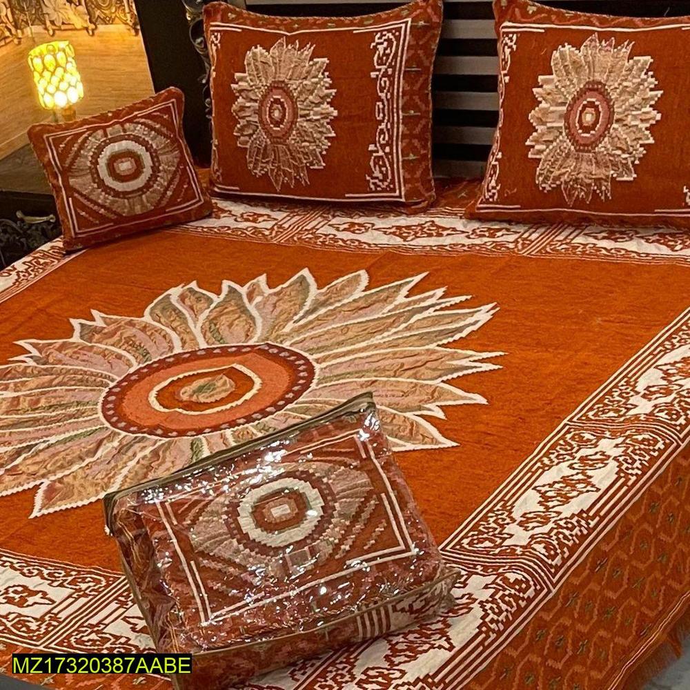 4 Pcs Velvet Jacquard Embroidered Double Bedsheet