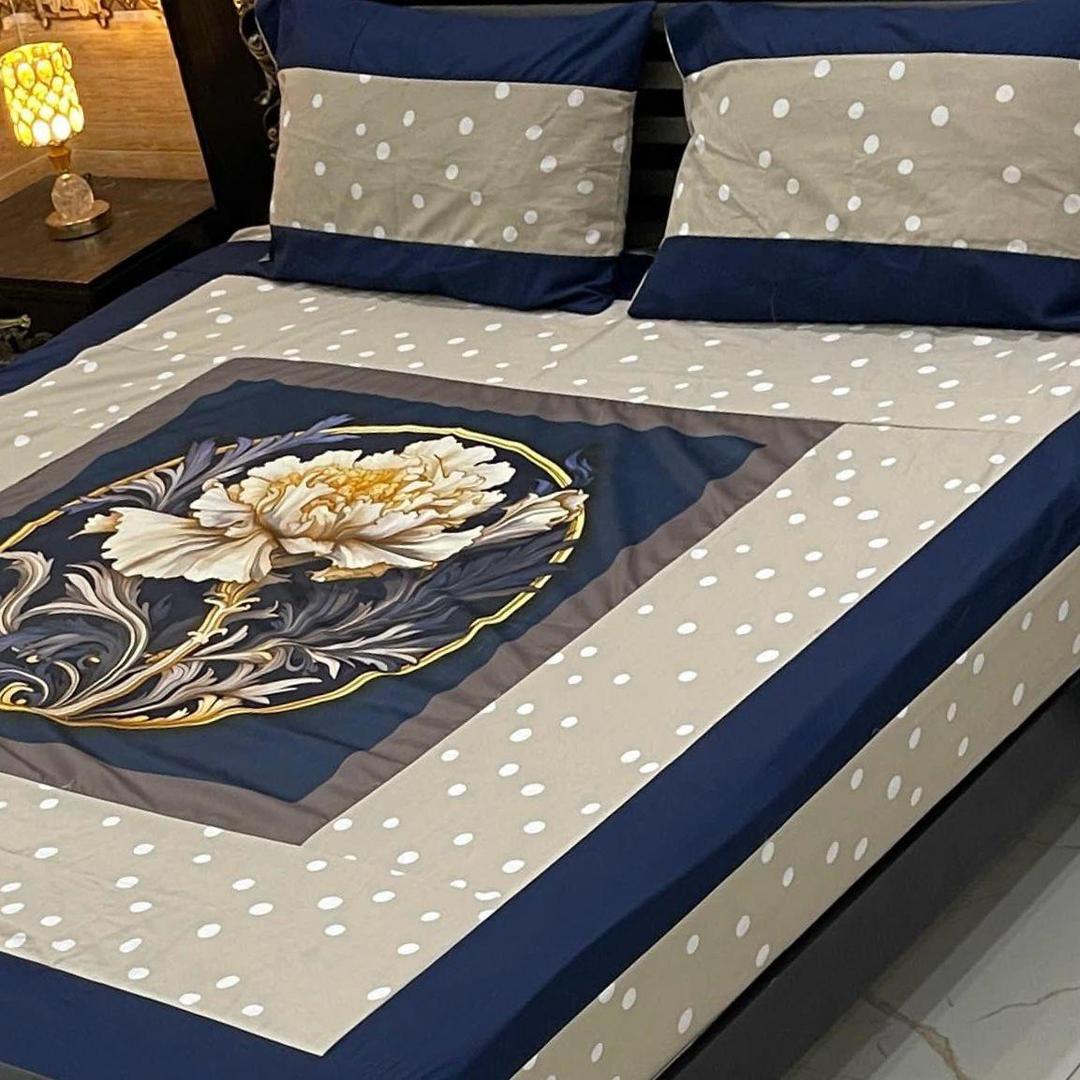 Luxurious Cotton Printed Double BedsheetSet - 3 Pcs
