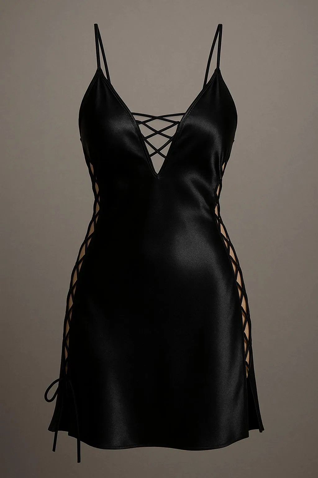 Luxurious Silk V-Neck Nightgown - 1 Pc Women's Stitched Sleepwear in Black