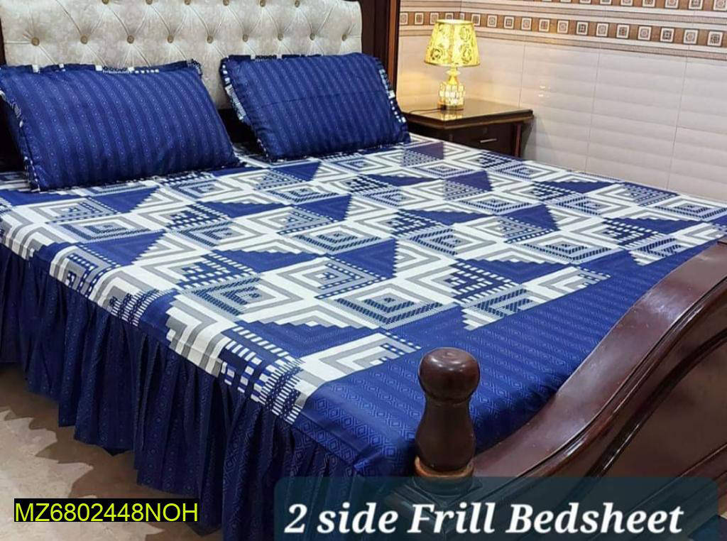 Two Sided Frill 3 Pcs Double Bedsheet